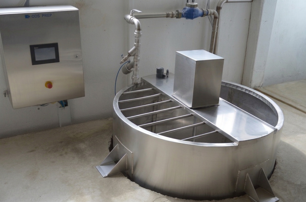 Dissolving and reserving of Salt and Soda supplied in solid form in a stainless steel tank at a controlled concentration.